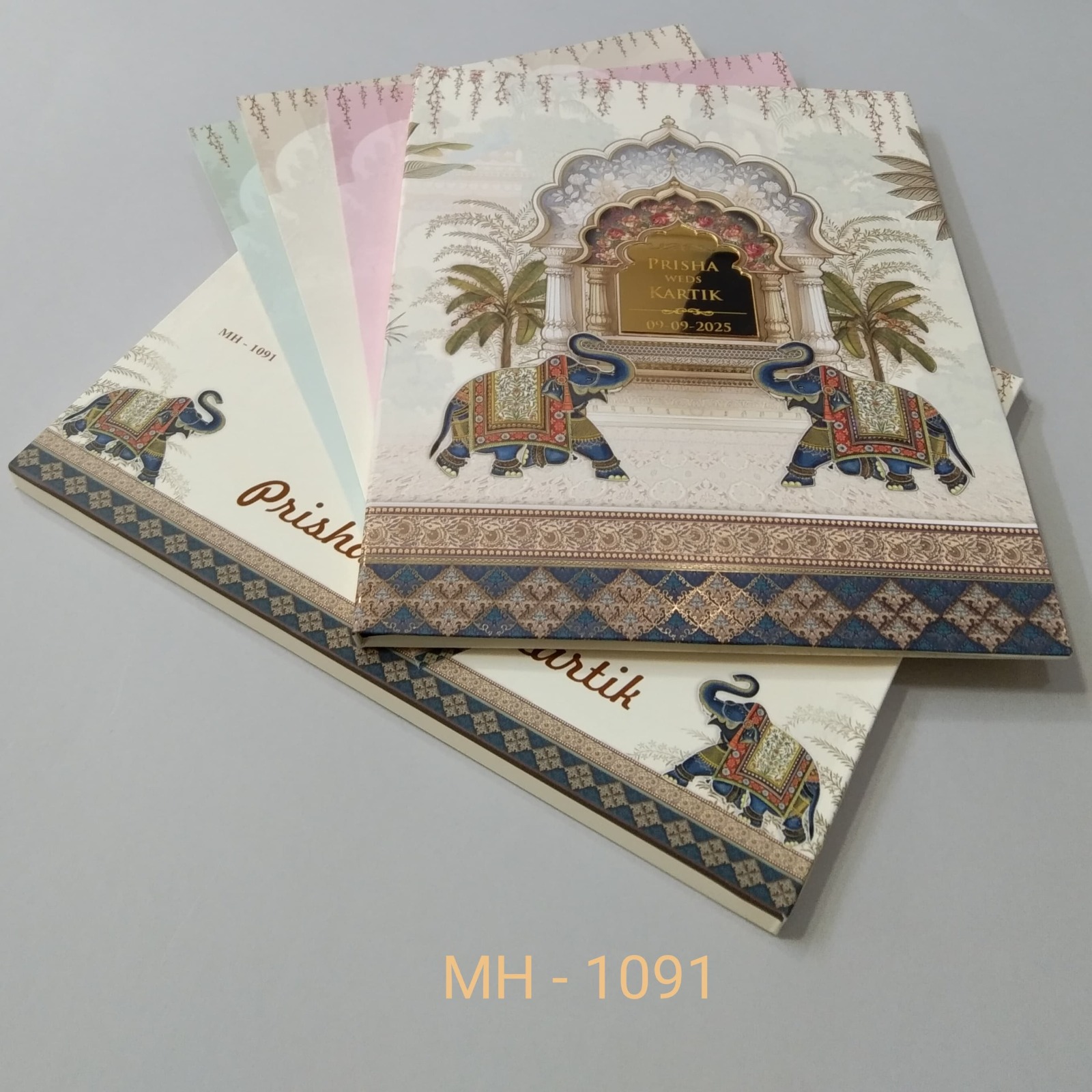 Deep hues, ornate motifs, and gold foiling bring royal palaces to life. This card captures the essence of Indian grandeur. Ideal for couples who want heritage elegance.