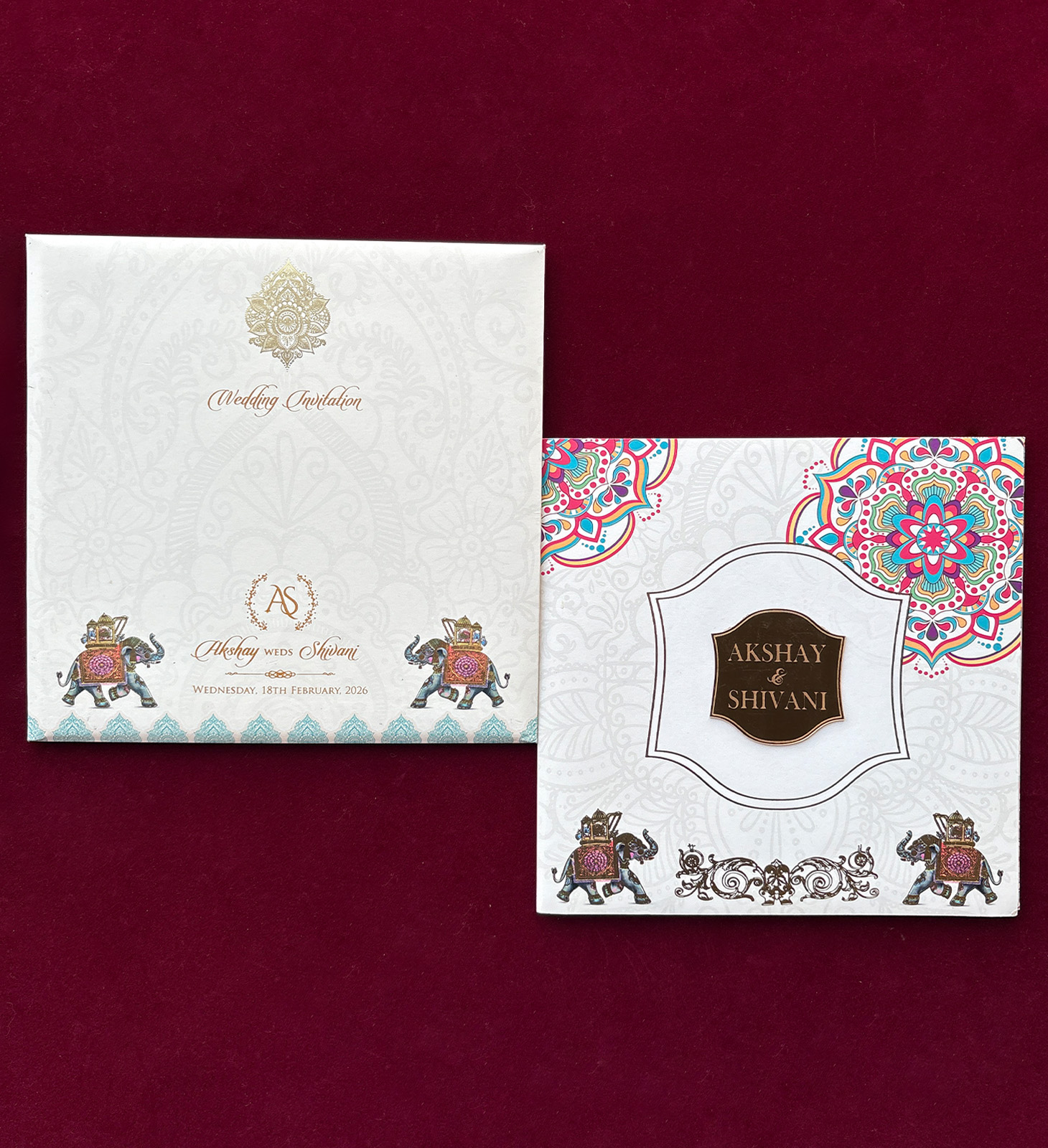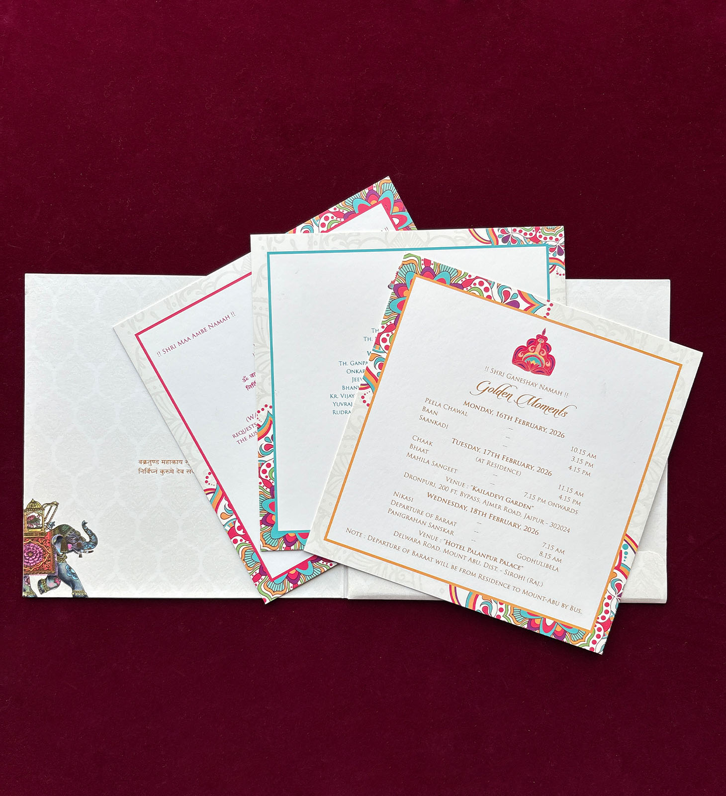 Gold mandala detailing with elephant motifs and foil accents