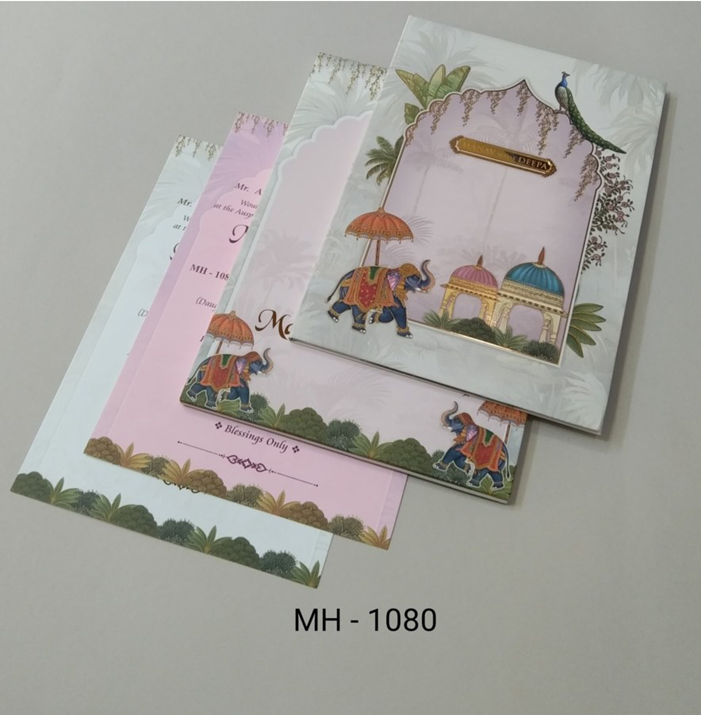 A pure ivory base embossed with intricate floral motifs offers timeless sophistication. The soft textures and fine typography convey effortless charm. Ideal for elegant weddings where less truly feels like more.