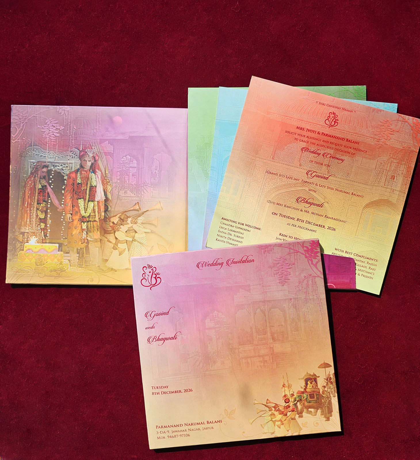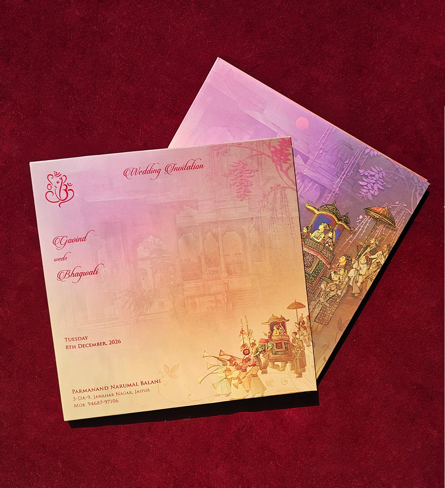 Premium laser cut card featuring Radha Krishna artwork with velvet finish.