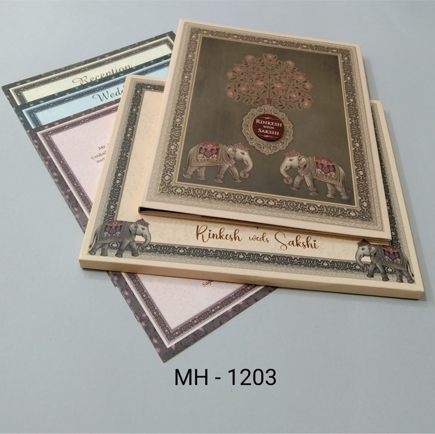 The embossed monograms and gold foil borders. Perfect for royal or evening weddings. A stunning invitation that redefines modern Indian luxury.